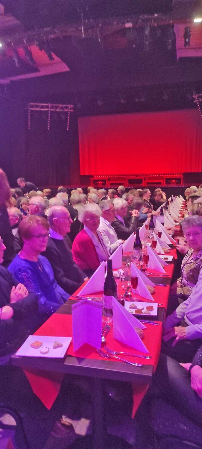 Jeudi 23 février, 52 adhérents de l'Association Lons Accueil, présidée par André ROY, ont partagé une agréable journée autour d'un déjeuner spectacle au cabaret de Anse, le "Voulez-vous Grand Lyon".